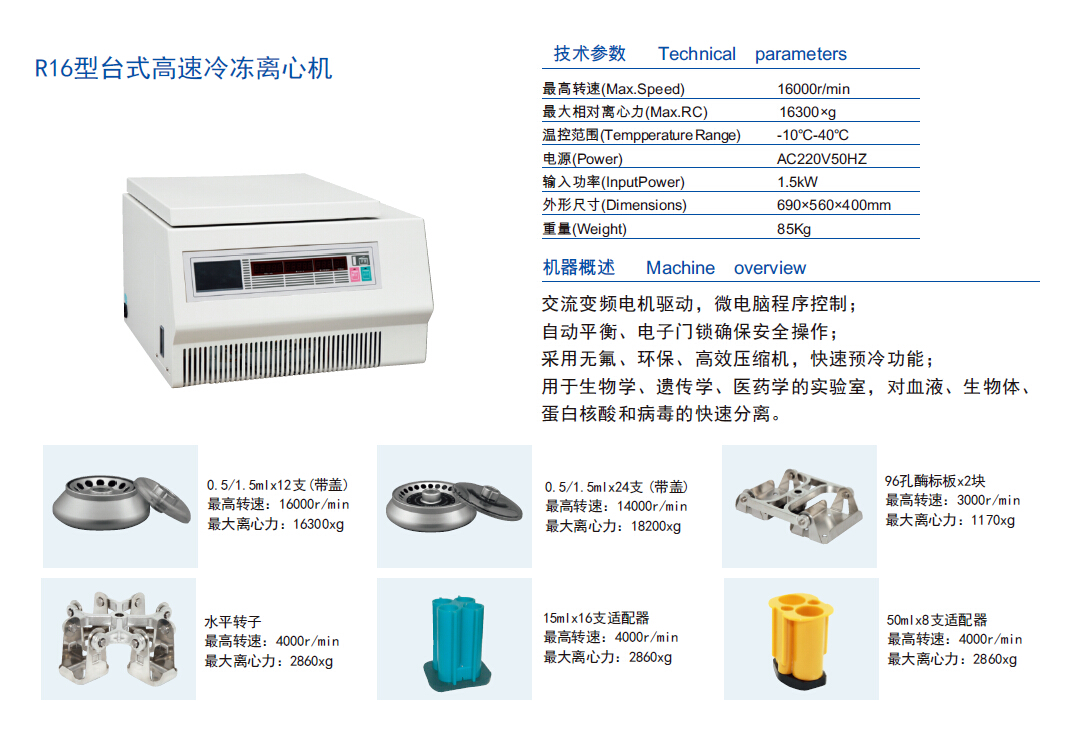 用于生物学、遗传学、医药学的实验室,对血液、生物体、蛋白核酸和病毒的快速分离。