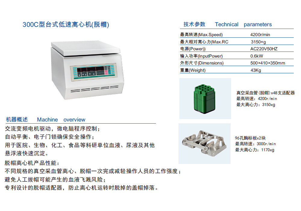 用于医院、生物、化工、食品等科研单位血液、尿液及其他悬浮液快速沉淀。