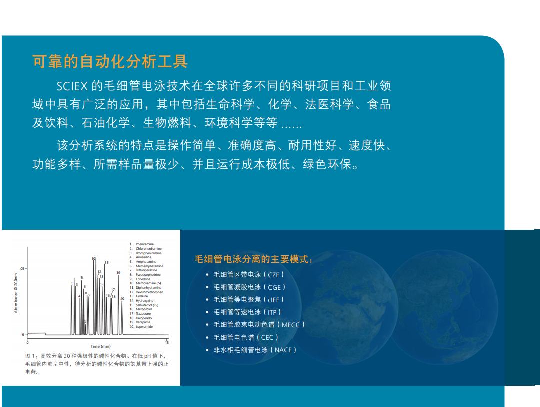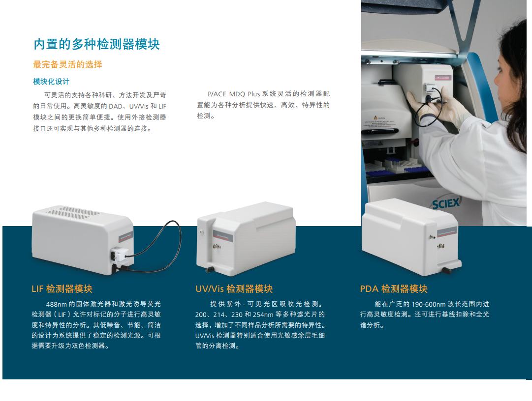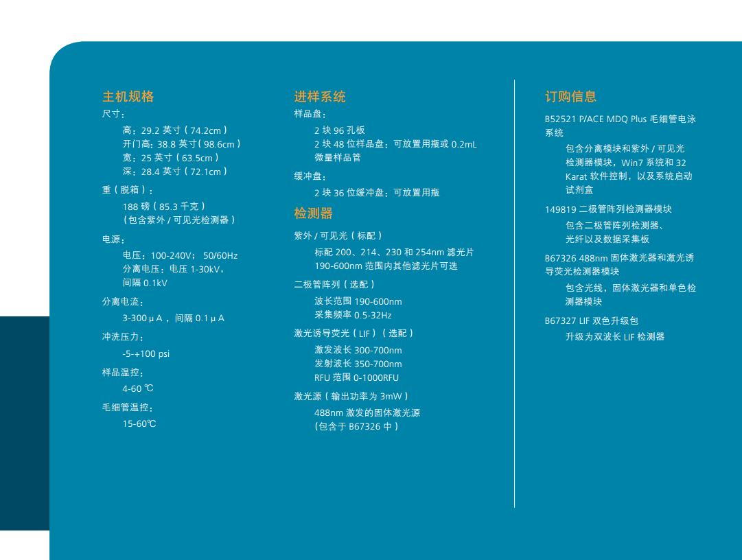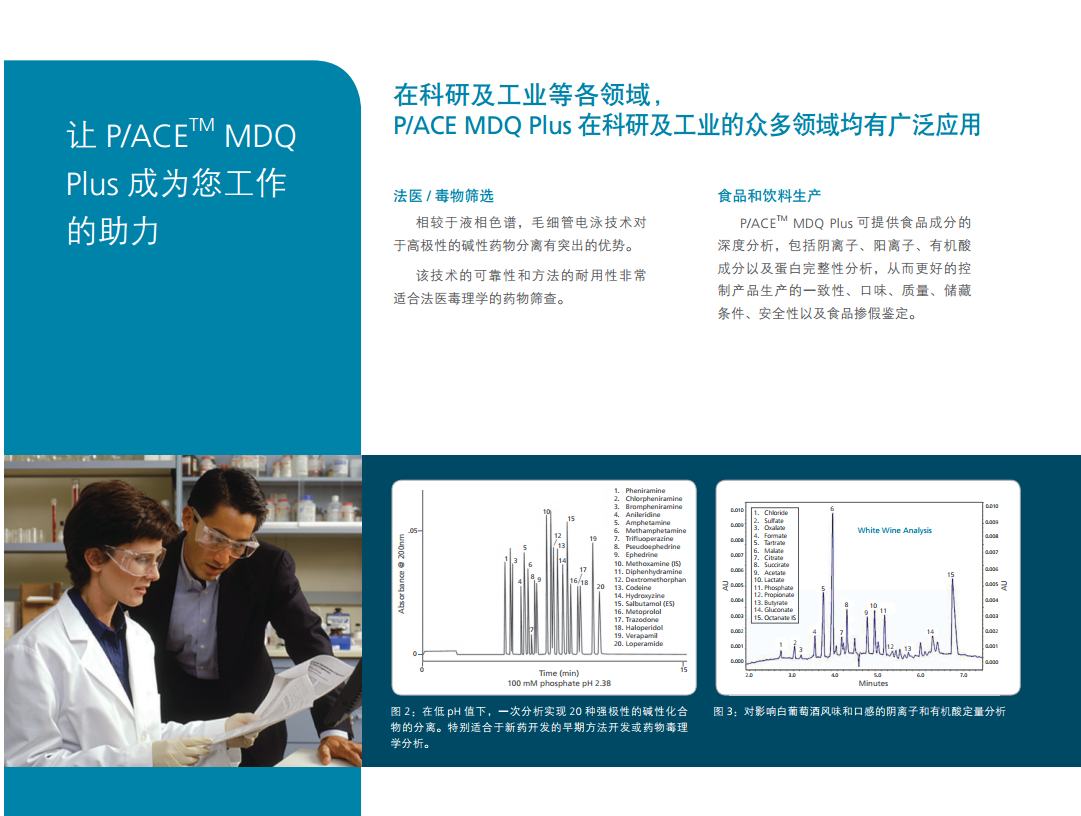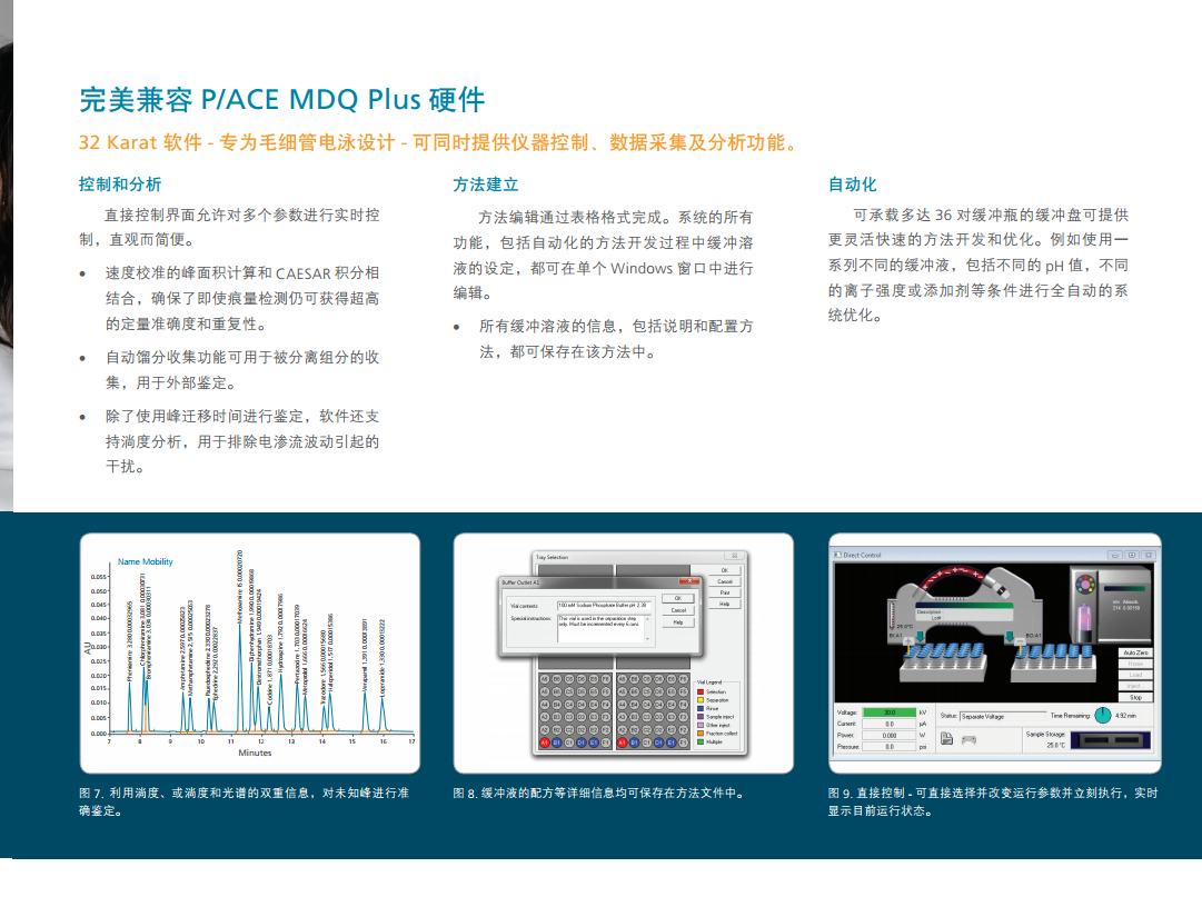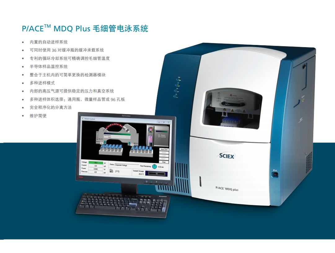 P/ACE系列是自动化程度高并可编程的毛细管电泳系统,能对复杂样本进行快速分离。该系统的分离毛细管安装在一个可更换毛细管的卡盒中,并配有专利的循环冷却系统来精准调控毛细管温度。毛细管温度的精控系统使其可使用高离子强度的缓冲液及大口径的毛细管来对困难样本进行分析。P/ACE™ MDQ Plus毛细管电泳系统,方法开发更快速、结果验证更简便、运行成本更便宜。