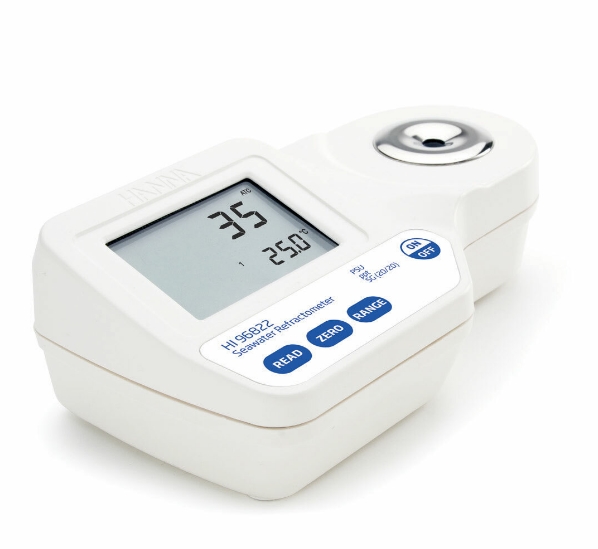 HI96822高精度氯化钠折光仪,用来测定人工和天然海水,海洋或微咸水的盐度,使用去离子水校准零点后,将样品滴加到测量池上,数秒钟后,将显示测量结果和温度值。