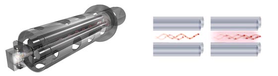 | FASST方式(Fast Automated Scan/SIM Type),是实现SCAN数据和SIM数据同时采集的技术。在GCMS-QP2010 SE 的FASST方式中,专利ASSP技术改进了上述功能,SCAN模式时在更短的时间内即可获得正确的质谱图, SIM模式时将Dwell时间缩短至以往的1/5(最短1ms),以监测更多的SIM通道,从而获得更高灵敏度。 | |