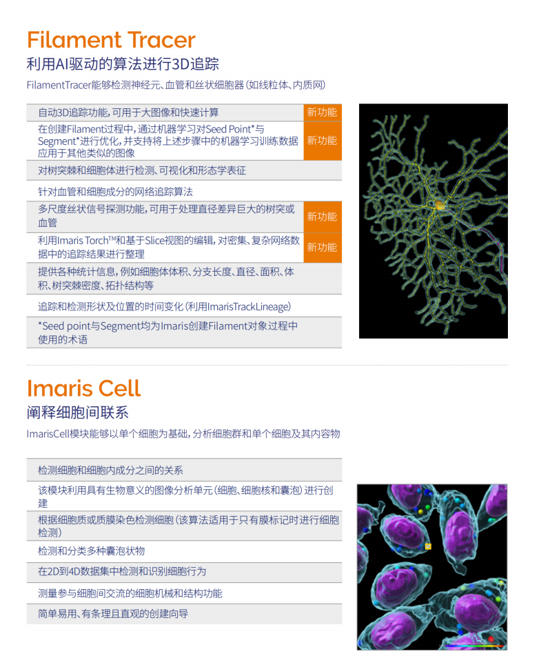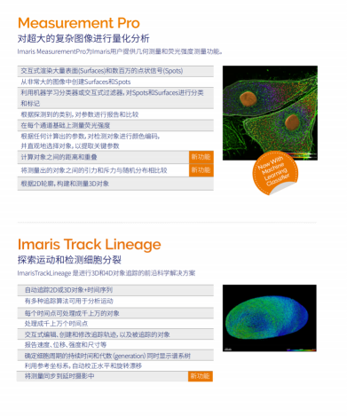 在过去的25年里,lmaris不断改进其3D/4D荧光图像的可视化技术,以适应日益增长的显微图像数据同时为细胞生物学家、神经学家,以及其他生命科学领域的专家引入一系列分析工具。