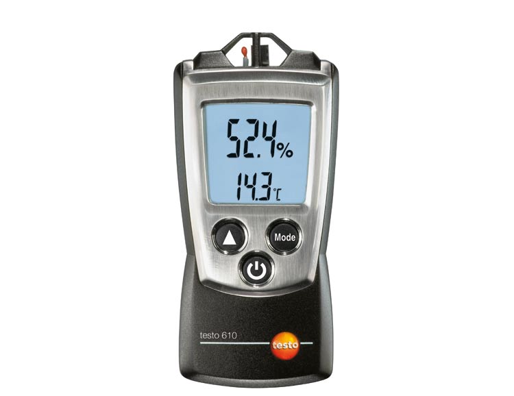 testo 610能同时测量相应的空气湿度和温度。带露点温度和湿球温度计算功能,以及锁定功能和最大/最小值显示功能。
