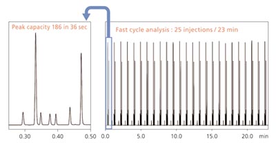 Nexera系统不仅实现了超快速分析,同时还兼具高分离分析,在130MPa高耐压系统中使用具有超强分离能力的色谱柱。该色谱柱更长,填料粒径更小,有助于超快速和高分离分析同时实现。