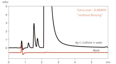 在LC/MS分析中对常见的生物、食品等复杂基质成分分析时,如何降低源于非目的成分的背景噪声和交叉污染因素是MS前端装置LC的使命。Nexera SIL-30AC自动进样器配备最多可选择4液的多重清洗机构,可靠地清洗进样针的内外面,实现更稳定的LC/MS分析。